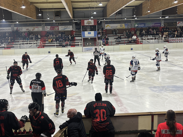 Es gab Torchancen auf beiden Seiten, aber noch ließen sich beide Goalies nicht bezwingen. >Kölle< hielt mit stoischer Ruhe alles, was auf seinen Kasten kam – Sebastian Brockelt war es dann, der in der 16. Minute den vielumjubelten Führungstreffer erzielte. Auf der rechten Seite brachen Tim Ratmann und Meik Kindler durch die Abwehrreihe der Kobras, passten die Scheibe auf >Brocki< und der brauchte ‚nur‘ noch seinen Schläger hinzuhalten und der Bann war gebrochen – 1:0 (15:30). Doch Dinslaken ließ sich von dem Rückstand nicht beeindrucken, machte weiter Druck, aber unsere Abwehr stand und dann war da auch noch unser >Kölle<!